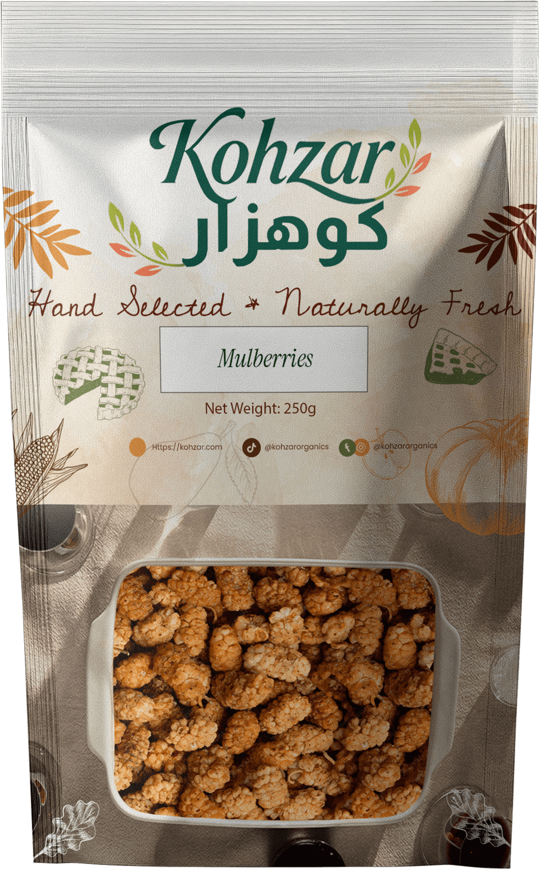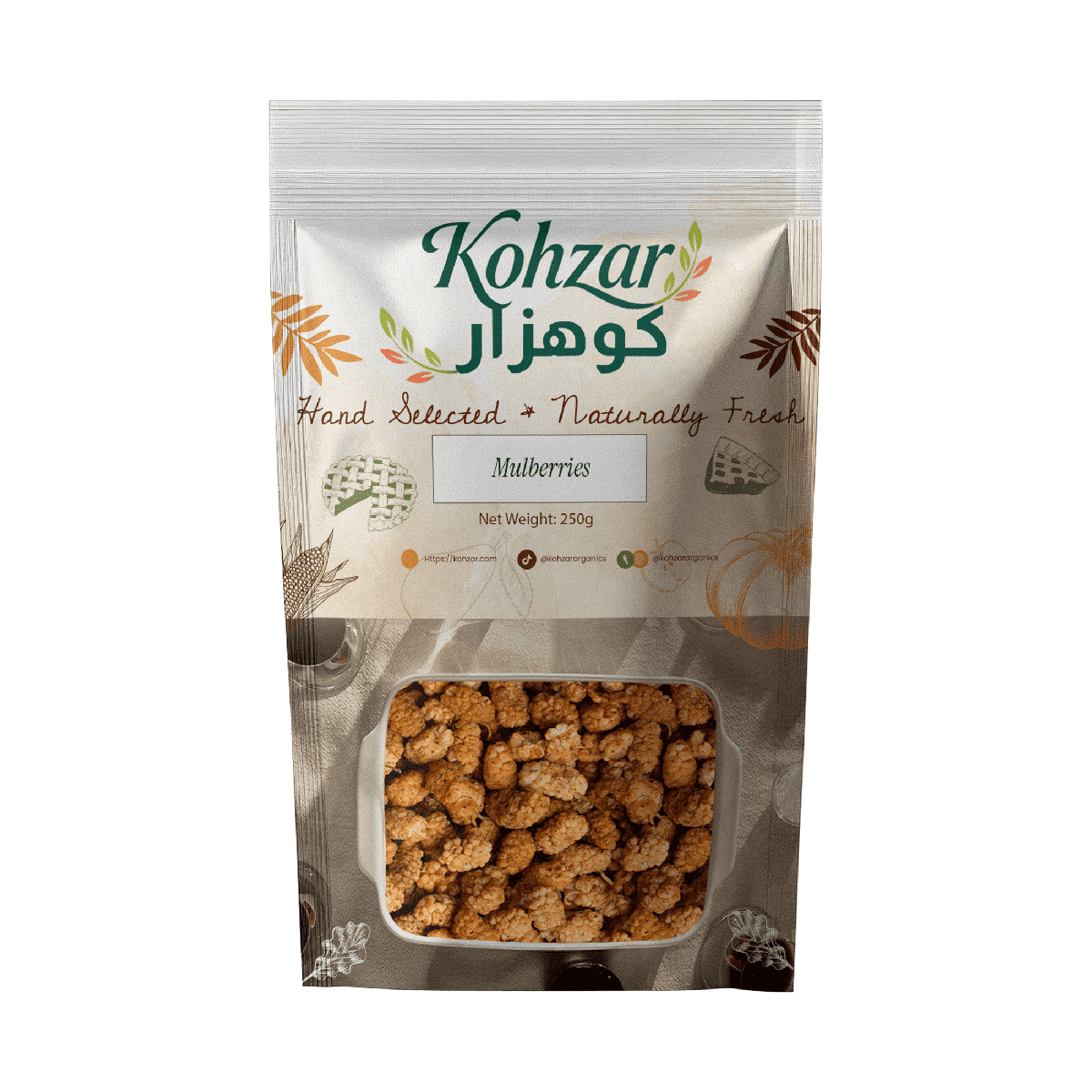 Kohzar Handpicked Mulberries are carefully selected and naturally dried to preserve their unique flavor and wholesome goodness.